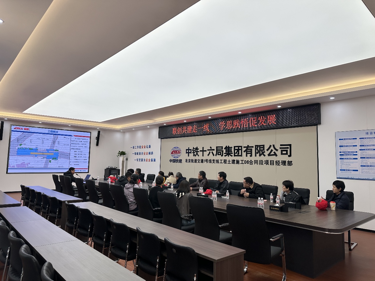 2025年10月21日,北京市政工程行业协会党支部组织协会全体人员来到位于丰台区北宫镇的中铁十六局北京地铁S1号线6号合同段,与项目部党支部开展共建活动。