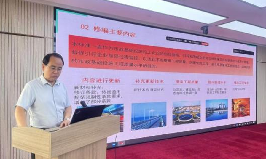 本次活动系协会积极响应全国“质量月”号召,聚焦技术交流与标准培训,旨在全面提升市政基础设施质量工作者的专业意识和能力水平。活动由协会副秘书长陈永华主持,协会副会长兼秘书长刘其铎出席会议并致辞。刘总在致辞中明确质量是工程建设的永恒主题、行业发展的生命线,更事关人民幸福安康、城市运行安全与经济社会发展大局。每一项市政工程都直接关系民生福祉,承载人民群众对美好生活的向往,折射城市现代化建设的成果,必须建立健全“层层负责、人人有责、各负其责”的全员责任体系,秉持百年匠心,打造经得起实践、人民和历史检验的精品工程、安全工程、放心工程,为经济社会高质量发展筑牢根基。